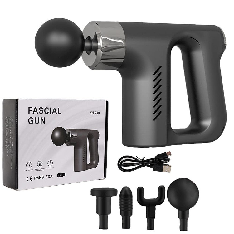 تنظیم سرعت ماساژور fascial gun مدل KH-740 ماساژوری سبک و کم حجم برای هر زمان و هر مکان است. با این ماساژور میتوانید کمر خود را به راحتی ماساژ دهید.این ماساژور با وارد کردن ضربه های کوبه ای به عمق عضلات نفوذ کرده و با وارد کردن ضربه در عمق مفاصل اثر خاص خود را بر جای میگذارد. این ماساژور تفنگی شارژی با داشتن 4 سری قابل تعویض و قابل شستشو به راحتی کار با این محصول کمک بسیاری کرده است. ضمناً چون این دستگاه با باتری لیتیومی که داراست قابل شارژ است آن را با خود در سفر نیز میتوانید حمل کنید. کافیست کابل USB این محصول را که از نوع type c (تایپ سی) است را به کلگی گوشی خود وصل کنید تا پس از دو ساعت شارژ شود. سپس شما میتوانید از این محصول بدون نیاز به نزدیک بودن به برق و دردسر های کوتاهی سیم برق و نبود پریز در کنار تخت و یا مبل از آن استفاده ببرید.