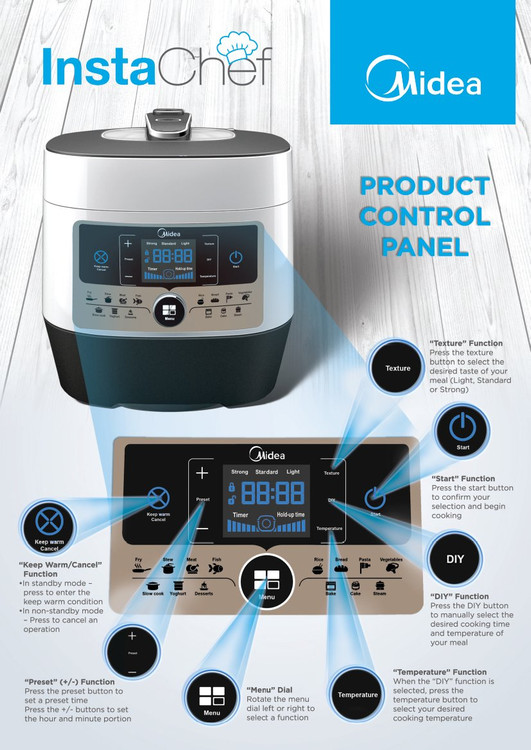 کمپانی Midea یکی از بزرگترین برندهای صنعتی کشور چین در تولید لوازم خانگی می باشد. این شرکت به دلیل داشتن محصولات درجه یک باعث افزایش حجم تولیدات خود و عرضه آن به سایر کشورهای جهان شده است. از تولیدات منحصر به فرد این برند می توان به زودپز مدل MY-SS6062 اشاره کرد. دستگاه های مشابه این محصول به دلیل داشتن چندین برنامه پخت به صورت پیش فرض به آن ها مولتی کوکر (Multi Cooker) نیز می گویند. در این محصول غذا با کمک المنت مخفی که در مرکز دستگاه قرار دارد در فضایی کاملا بسته و با ایجاد بخار زیاد پخت می شود که این امر سبب افزایش سرعت و پخت بهتر غذا می شود. زودپز MY-SS6062 با داشتن ساختار چشم نواز و رنگ پرطرفدار سفید و مشکی مورد توجه بسیاری از کاربران قرار گرفته است و به راحتی می توان آن را با هر دکوراسیونی در آشپزخانه ست کرد. مولتی کوکر MY-SS6062 شامل یک دیگ از جنس تفلون نچسب با ظرفیت 6 لیتر بوده که به کاربر امکان پخت غذا برای 10 الی 12 نفر را می دهد. همچنین دارای سرپوشی است که روی آن یک سوپاپ برای تخلیه بخار قرار دارد و هنگام اتمام کار با بخش زودپز با فشردن دکمه ای که روی دسته سرپوش قرار دارد، سوپاپ اطمینان بالا آمده و بخار حاصل از آن خارج می شود. زودپز چند کاره MY-SS6062 با توان مصرفی 1000 وات نشان دهنده قدرت بالای آن می باشد که فشاری برابر 70 کیلوپاسکال به آن وارد می کند.