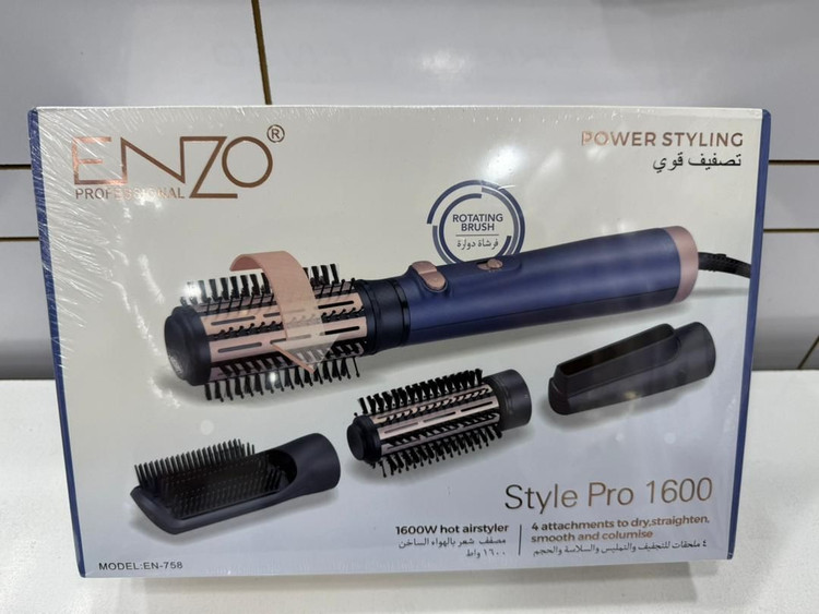 📊 مشخصات فنی سشوار Enzo EN-758 مدل EN-758 توان 2300 وات نوع موتور AC حرفهای یون منفی دارد حالتها 3 دما، 2 سرعت، دکمه باد سرد سریها 2 عدد متمرکزکننده لولهای کابل 2.5 متر با حلقه آویز