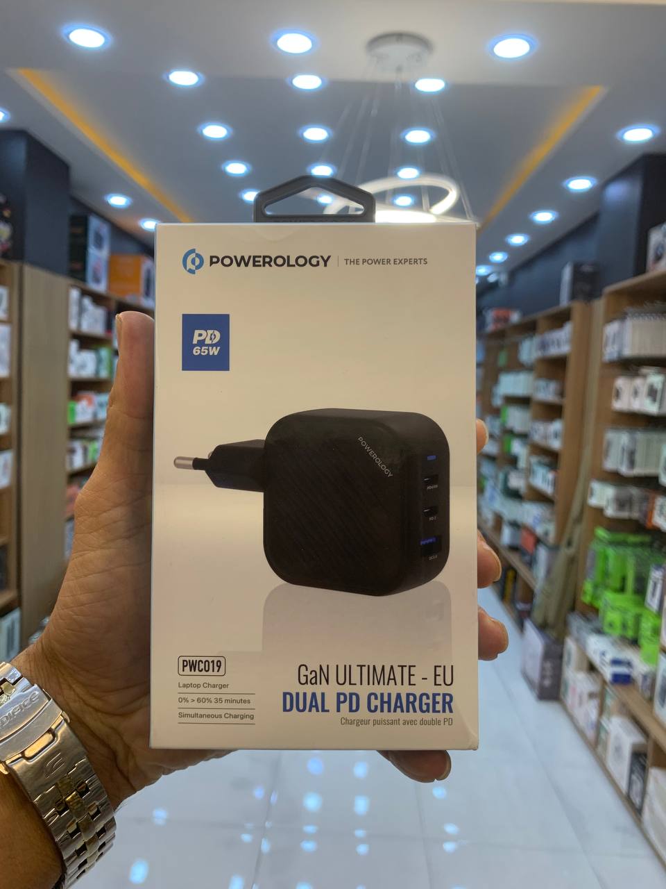 شارژر دیواری GaN 65W پاورولوژی مدل PWC019 یک شارژر قدرتمند و چندمنظوره است که با استفاده از فناوری پیشرفته Gallium Nitride (GaN)، امکان شارژ سریع، ایمن و همزمان چند دستگاه را فراهم میکند. این محصول با طراحی جمعوجور و استانداردهای اتحادیه اروپا ساخته شده و برای کاربران حرفهای و پرمصرف گزینهای ایدهآل محسوب میشود.