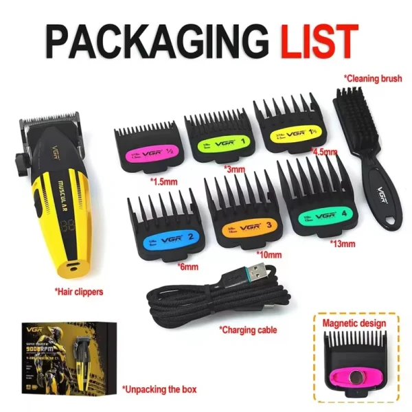 شامل: شانه استایلینگ، روغن روانکننده، کابل شارژ USB و برس تمیزکننده
