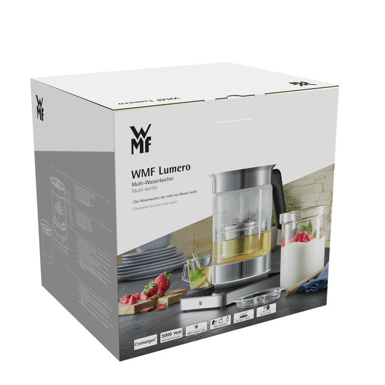 کتری برقی وی ام اف WMF Lumero Multi kettle، با طراحی مدرن و زیبا، یکی از کاملترین کتری های برقی در بازار است. پنج برنامه قابل تنظیم برای جوشاندن آب، تهیه چای، ماست و لعاب برای فوندوی شکلاتی، و همچنین گرم کردن غذای کودک در یک محفظه شیک، به کاربر امکان استفاده همه جانبه را میدهد. جنس ساخته شده از کرومارگان مات با کیفیت بالا، باعث میشود این کتری برقی به نظر بسیار خیرهکننده و شیک بیاید. ظرفیت نگهداری 1.6 لیتری و حداکثر توان خروجی 3000 وات این کتری، برای جوشاندن آب به اندازه کافی برای چند نفر، مناسب است. تنظیم دمای فوقالعاده دقیق از 40 تا 100 درجه سانتیگراد، نمایشگر دما و زمان برای نتایج عالی در تمام نوشیدنیهای داغ مورد علاقه شماست. پایه دستگاه با نور LED زیبایی دو چندان میشود و همچنین این کتری برقی، حداکثر ایمنی را با حفاظت در برابر گرمای بیش از حد و همچنین توقف خودکار جوش ارائه میدهد. با توجه به ویژگی های کارآمد و زیبایی ظاهری کتری برقی WMF Lumero Multi kettle، میتوان آن را به عنوان یکی از بهترین و پرطرفدارترین کتریهای برقی موجود در بازار برشمرد.