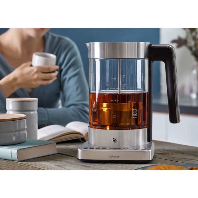 نمایشگر لمسی حرفه ای و پایه led دار, دمای قابل تنظیم, توقف اتومات آب جوش, چای ساز و دمنوش ساز, دارای برنامه اتومات, درب قابل جدا شدن برای گذاشتن قوری, سبد چای XXL ساخته شده از فولاد کرومارگان, شیشه SCHOTT Duran مقاوم در برابر حرارت, صافی چای قابل جدا شدن و بالا ماندن برای غلیظ نشدن چای, محفظه کاربردی برای گرم کردن غذای کودک و برای تهیه لعاب ماست.
