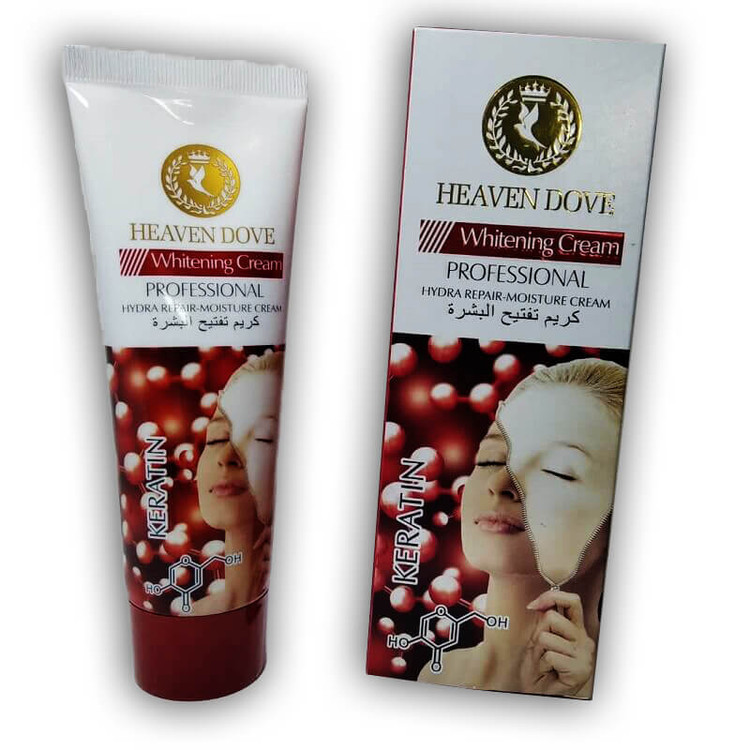 کرم سفید کننده هیون داو heaven dove یا همان کرم تفتیح البشر یک سفید کننده عالی و سریع پوست صورت و بدن مشکلات پوستی را به طور موثری بهبود می بخشد رطوبت پوست را افزایش میدهد ، چین و چروک ها را از بین می برد و لاستیسیته را بهبود میبخشد . این کرم با ایجاد رطوبت روی پوست انعطاف پذیری پوست صورت را بیشتر می کند . هیون داو یا همان تفتیح البشره برای چی خوبه؟ این کرم یک سفید کننده فوری هست که شما را در مواقعی که وقت ندارید از چند کرم بی نیاز میکند این محصول بسیار با کیفیت است روش مصرف: برای استفاده ابتدا پوست صورت خود را با آب ولرم و یک صابون گیاهی شسته و بعد کاملا خشک کنید. سپس نوک انگشت ها را بر روی کرم مالید و روی پوست خود مالش دهید، بهتر است این کار را فقط برای یک نقطه خاص از پوست انجام ندهید چراکه پس از مدتی نقطه فوق سفیدتر از سایر نواحی کناری آن خواهد شد. صبح پس از بیدار شدن از خواب با صابون گیاهی صورت خود را شسته و در طول روز میتوانید از کرم های ضد آفتاب و یا مرطوب کننده همیشگی خود استفاده کنید.