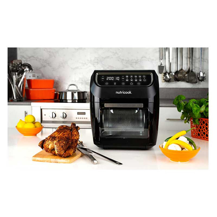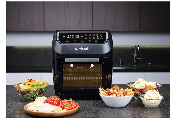 با استفاده از سرخ کن نوتریکوک مدل NUTRICOOK NC-AFO12 فراتر از انجام یک فرایند پیش میروید و امکان انجام عملکردهای متنوع پخت و پز بیش از همیشه میسر خواهد بود. توان 1800 واتی قدرتمند این سرخ کن 12 لیتری با بهره گیری از سه طبقه مجزا شرایط پخت انواع غذای مد نظر شما برای یک جمع خانوادگی بزرگ و یا یک مهمانی را به آسانی فراهم میکند. به لطف برخورداری از فناوری Rapid Air با گردش سریع هوای داغ در داخل فضای سرخ کن، میزان مصرف روغن تا حد 80% کاهش مییابد بنابراین غذایی با بالاترین سطح سلامت را تهیه خواهید کرد. عملکردهای مختلف سرخ کن AFO12 نوتریکوک شامل سرخ کن، فر، جوجه گردان و خشک کردن میوه ها میباشد. پنل کاربری لمسی دستگاه دارای 9 برنامه پیش فرض جهت پخت انواع غذا میباشد که فرایند تهیه غذای مدنظر شما را به راحتی و در اسرع زمان پیش میبرد. گردش هوای 360 درجه در داخل فضای سرخ کن لذت تهیه غذایی از سطح تُرد و از داخل خوش پخت را به همراه دارد. اقلام مختلف و متنوع سرخ کن AFO12 نوتریکوک شامل یک سبد چرخان، سیخ جوجه گردان، 3 قفسه توری و 10 سیخ جهت سرخ کردن، کباب کردن و یا خشک کردن میوه ها میباشد. وجود درب شیشه ای بزرگ و ایجاد نور داخلی این امکان را میدهد که هر لحظه از فرایند پخت تحت نظارت شما صورت پذیرد. بهره گیری از حالت Standby، گرم شدن دستگاه قبل از گذاشتن غذا در آن موسوم به Preheat، پایه ضد لغزش و سرخوردن و قابلیت شستشوی قطعات در ماشین ظرفشویی از دیگر امکانات سرخ کن نوتریکوک مدل NUTRICOOK NC-AFO12 به شمار میآید.